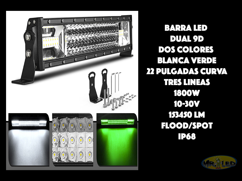 Barra dual doble color blanco/verde 22″ curva 1080w a control remoto estrobo